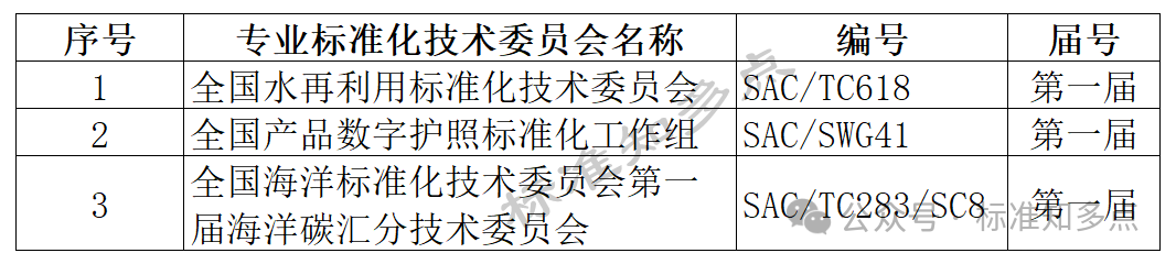 摘要:近日,小知从全国专业标准化技术委员会信息公示系统了解到,国家标准委发布《关于成立全国水再利用标准化技术委员会等3个标准化技术组织的公告》(2026年第3号)。3个技术委员会名单见下表。
